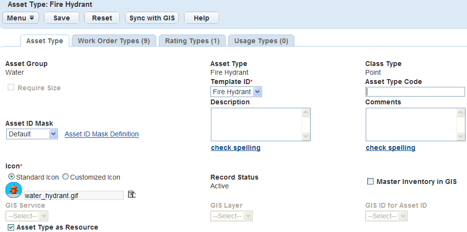 You can make modifications to existing asset types when information changes. For example, if the icon changes or you need to update the asset ID mask. For more information about updating the asset ID mask, see Assigning an Asset ID Mask.