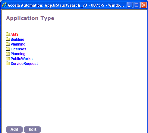 When you set up an application type, you specify the components of the application, such as the fee schedule, the inspection group, and the workflow process.