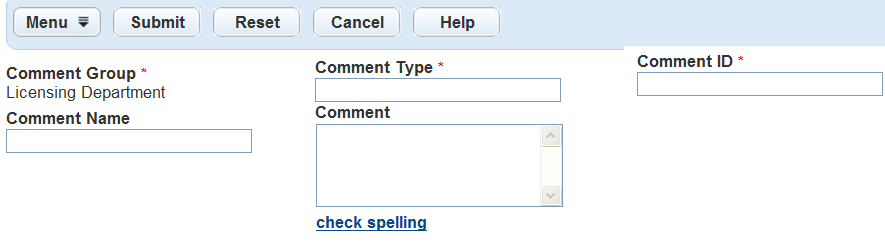 5. You can add a comment to this comment type now or wait until later. To add a new comment later, see Adding a New Comment. To add an existing comment later, see Adding an Existing Comment Type. To add a comment now, complete the following fields: