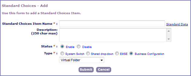 Enter the name of the new virtual folder group you are creating in the Standard Choices Item Name field.