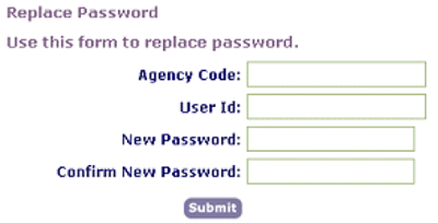 2. On the Replace Password page, update the fields (User Id is for the current user).