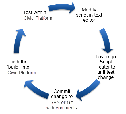 The following diagram illustrates a typical script development process using the JavaScript framework with the master scripts: