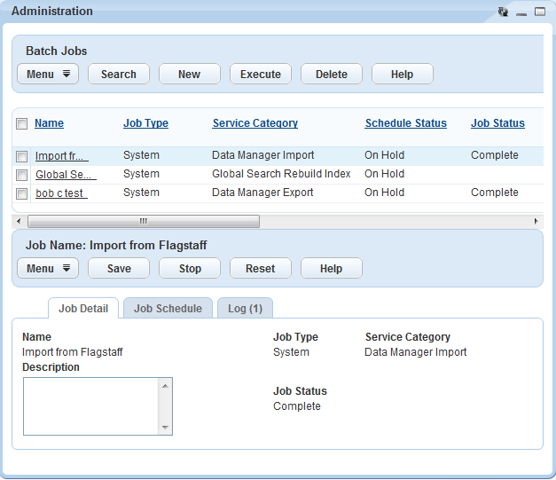 Figure: Batch Jobs Portlet
