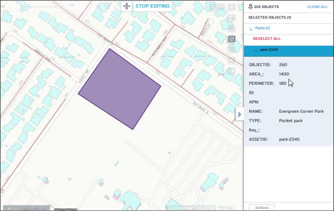 Note: The GIS Objects panel above only shows the map layer that was edited. It does not show GIS objects that are selected from other map layers. - Optionally click the
