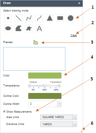 | The drawing tool offers basic, temporary annotation capabilities. It currently does not allow you to undo nor update an existing annotation. If you click Clear, all current annotations will be cleared. |