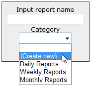 You are returned to the Input Report Name dialog with the new category name displayed in the Category field.